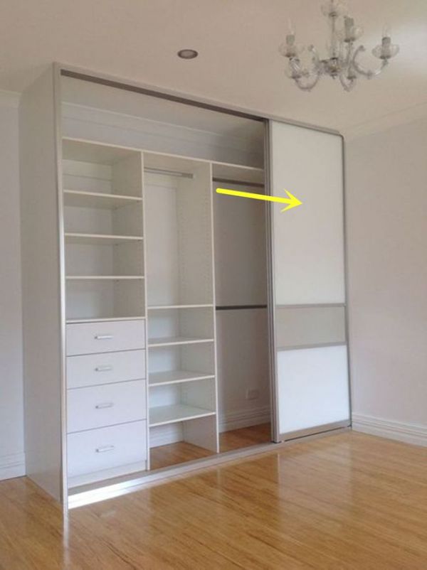 第一点,柜门的样式最好还是以推拉门为主,不然最上面一层因为尺寸太大,根本无法装平开门,整体搭配会不太协调。