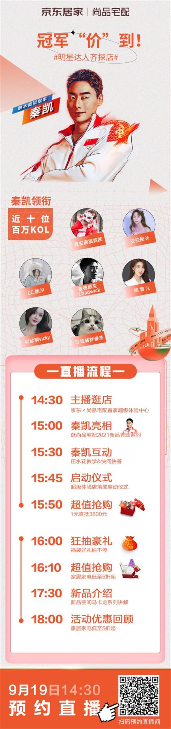 9月19日,秦凯将空降试运营阶段的京东X尚品宅配超级家居体验中心,并领衔近十位百万级KOL开启花式探店送福利活动,与西安市民共同开启一场全新的数字化家装体验之旅。