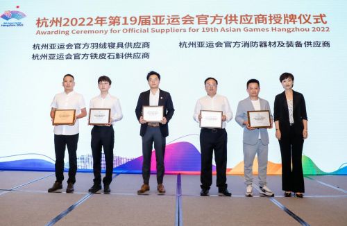 9月8日,杭州2022年第19届亚运会官方供应商授牌仪式在杭州洲际酒店隆重举行。杭州康浩一家家居科技有限公司正式成为杭州2022年亚运会官方羽绒寝具供应商,将携以SIDANDA为代表的旗下品牌,为把杭州亚运会办成一届具有“中国特色、浙江风采、杭州韵味、精彩纷呈”的体育文化盛会不遗余力贡献力量。