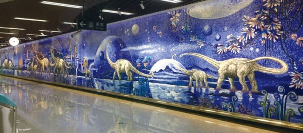 成都地铁 7 号线理工大学站壁画《梦回远古》