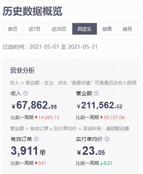 一步一个脚印下,徐东店的客户群体慢慢的庞大起来,再结合公司提供的运营策略,日订单破200都不在话下,餐品的平均单价在一份20元,每天的日流水大概4000元,每单的纯利润有60%,每月店铺纯利润平均就有7万。可观的营收让我信心倍增。