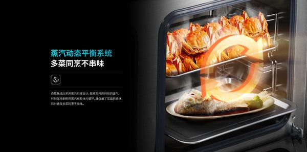 其蒸箱部分采用3D独立蒸,激发食物本味,保留鲜香,并利用蒸汽动态平衡系统,时刻保持新鲜的蒸汽在腔体内循环,既保留了菜品的香味,同时还能保证多菜同蒸不会串味。另外蒸箱顶部有辅热系统,不会在腔体顶部有冷凝水珠悬挂和滴露,最大限度地保护菜品地品相和口感。