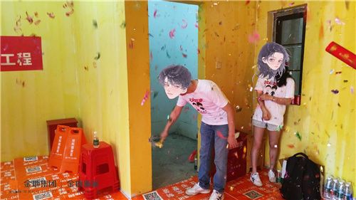 吉时一到,随着一声礼花,业主亲自敲响新家开工的第一锤,开工大吉。业主脸上露出的笑容,怀着对新家的向往,金地新家带着业主的向往将工程施工的使命和责任做到极致,让业主达到最大的满意!