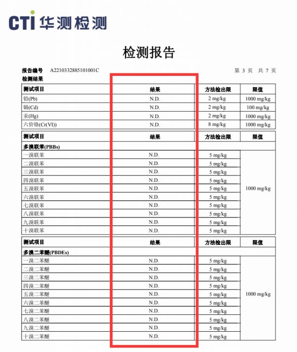 新型双组份环保型粘合剂检测报告,各项有害挥发性物质均为未检出。(N.D.为not detected 的缩写,表示未检出)