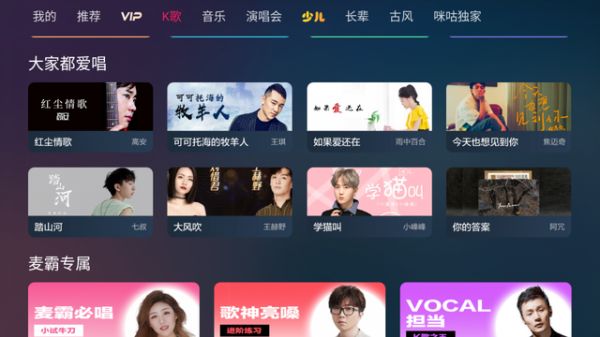 融合卡拉OK、演艺直播、音乐MV内容栏目。在K歌页面,将资源展示为 “热门歌手”“排行榜”等分类楼层,手机扫码点歌的功能也非常便捷,而且里面还引入了“专业教唱”的K歌教唱视频,喜欢K歌但是唱功没那么好的用户可以用来提升唱功,这个功能好评。