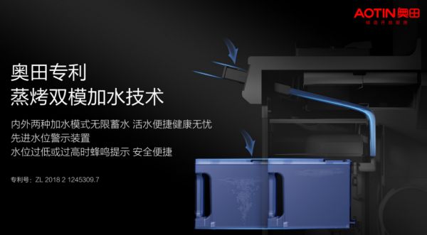 在续水方面,奥田“东方明珠”ZKM5/ZKM5S专利蒸烤双模加水技术,内外两种加水模式无限蓄水,活水便捷健康无忧,先进水位警示装置,水位过低或过高时蜂鸣提示,安全便捷。