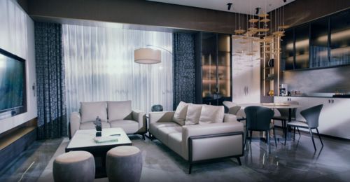 据悉,欧派全屋定制“云影东方”系列在客厅空间的设计上采用了极简风格,利用东方色彩与极简线条的融合,形成朴素自然的基调。在整个客厅空间中,设计师使用了多种元素,包括金属、木纹以及皮纹等,在低调的视觉感官中传递出新中式风格的独有魅力。