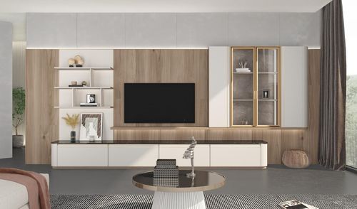 在客厅空间中,电视柜占据着很大的视觉比例,“奈斯”系列电视柜推崇简洁大气的设计风格,整体由地柜、玻璃吊柜和开放层板等组合而成,给人一种轻盈、放松之感。尤其是开放层板,该系列使用了全新的铝封边烤漆工艺,质感细腻触感柔和,铝封边的金色点缀,不仅提升了整套产品的品味,还让展示空间更自由,为电视柜增添了一抹奢华。并且无论是开放区,还是地柜、吊柜,都采用了柔和色彩,带来柔美温暖的家居氛围。