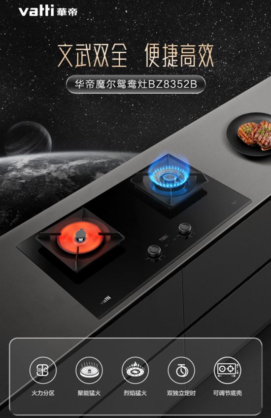 树立厨电行业标杆是驱动华帝不断前行的动力源泉,卓越的产品品质则是华帝深受消费者青睐的根本原因,华帝全新推出的魔尔套系烟灶新品,旨在全面提升消费者生活体验。据悉,华帝魔尔套系烟灶新品包含近拢吸橱柜烟机J6019和鸳鸯灶BZ8352B。其中,近拢吸橱柜烟机J6019采用创新拢烟腔外推结构,释放厨房空间;超薄机身设计,与橱柜浑然融合;伸缩拢烟腔,顺势直吸更强劲,整体造型既动感又独具个性魅力。另外,J6109还配有手势智能控制和V-Clean智洁系统,操作更便捷。