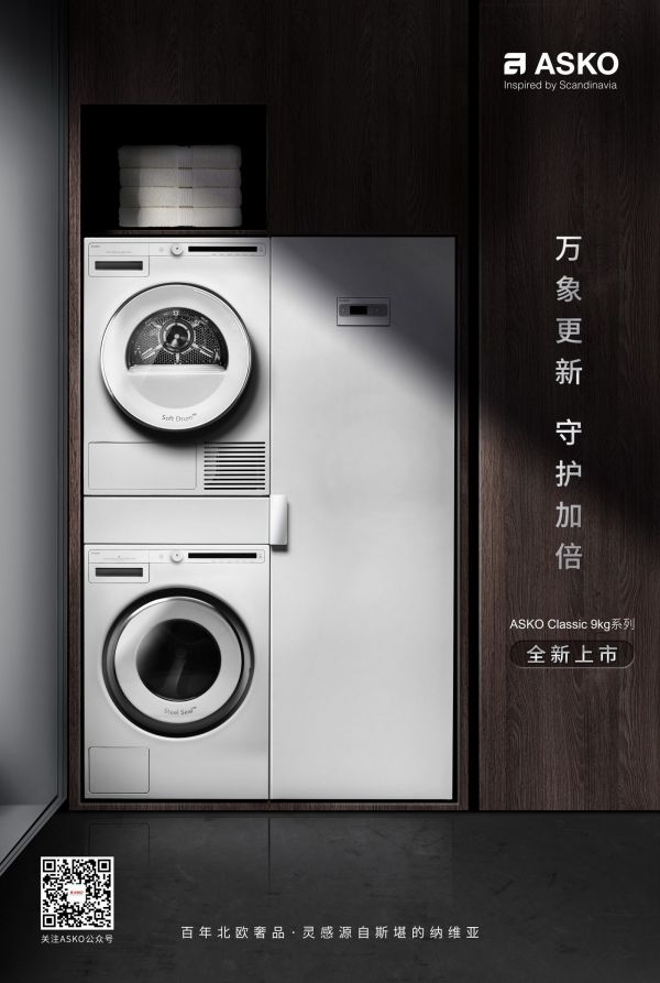 灵感源自斯堪的纳维亚的顶级家电——ASKO发布了全新Classic 9kg系列产品W2096R滚筒洗衣机和T209H热泵式干衣机,率先开启全新升级的高品质衣物洗护生活方式。精准拿捏分寸,恰如其分兼容任何家装气质,亦可通过灵活的组合去满足不同的个性化需求,将北欧简约内敛的美学风格,融入菁英栖居之所,分寸空间缔造极致实力体验,让洗护不止洁净,让健康守护加倍。