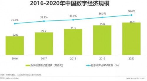 伴随社会经济的发展,传统零售不断向新零售演进升级。根据数据统计显示,中国数字经济规模不断提升,2020年中国数字经济增加值规模达39.2万亿元,同时数字经济占GDP比重逐年提高,2020年达38.6%。依托数字化知识及信息,以信息网络为载体,以数字技术为驱动,数字经济在新经济业态下创造更多产能。