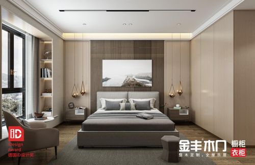 金丰设计师设计的卧室外观简单别致,整木衣柜简约的设计理念,细腻、精致的做工,没有花里花哨的修饰却也有别有一番情趣,给人简洁、清爽的视觉效果。这不仅是产品,更是时尚魅力诱惑的艺术品,相结合带来唯美的生活享受。