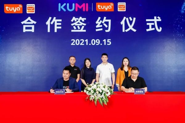 9月15日,全球知名智能穿戴品牌库觅科技选择与全球化IoT平台涂鸦智能(NYSE: TUYA)达成合作,并在涂鸦智能运动健康产品方案发布会上正式签订合作协议。库觅科技董事长郭锦炜、总经理林丽玲、产品总监罗勇峰,以及涂鸦智能副总裁孙新涛、大客户总监陈佳鹏、高级市场经理林鹭鹭等出席了本次签约仪式。