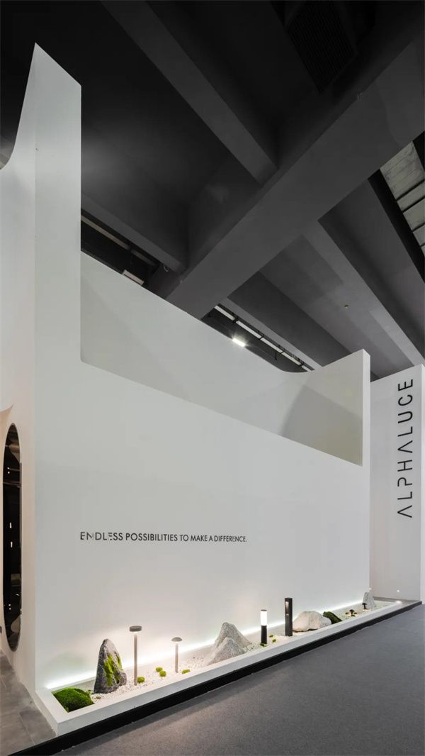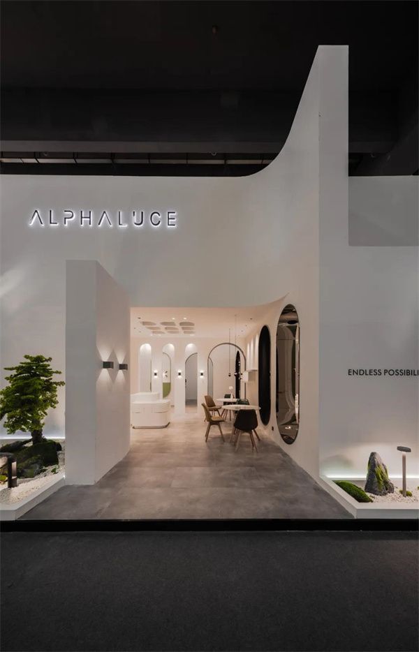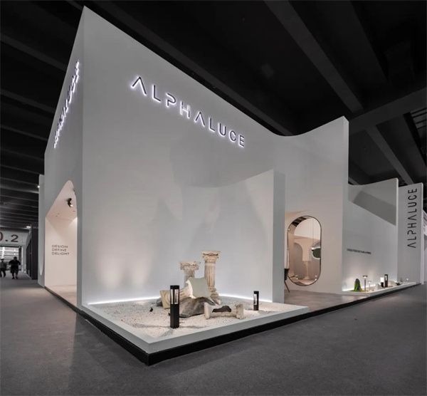 今年 ALPHALUCE 展台以简约大气的白色作为设计主色,采用意大利建筑风格,将弧形拱门、古罗马柱与 ALPHALUCE 现代灯光美学完美结合,精准的诠释了ALPHALUCE 极简(Minimalist)的设计理念,整个设计令人耳目一新,吸睛无数,引得众人纷纷驻足打卡、拍照。