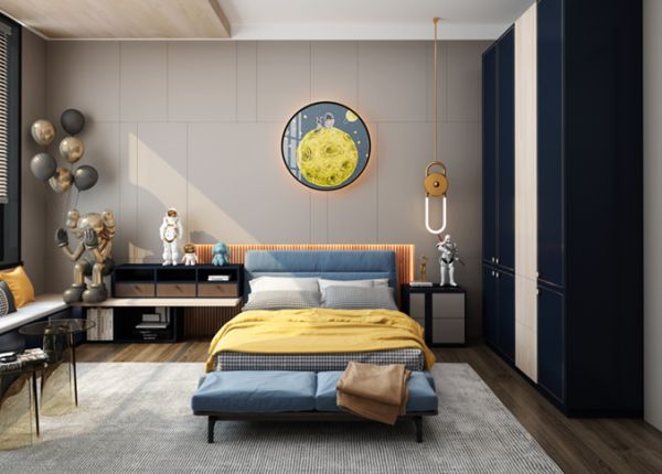 区别于同款产品,柏厨“未央”更像是陪伴青少年的神秘朋友。干净整洁的床品,暖色的墙面,淡色的窗帘,此时窝在学习区的椅子上看看书,就是一段安逸的时光;蓝白的配色使空间充满科技感,展示收纳区凸出展示品,彰显青少年的爱好、品味;追求个性潮流的少年慢慢长大,逐渐有了自己的社交圈,在这个空间,少年们可以完全放纵身心,与朋友们一起谈天说地。