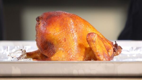 希希导演面临的挑战之一,正是用火星人集成灶还原烤鸡这道菜。剁头去脚,正鸡上油、酱油,撒盐、奥尔良粉,抹上蜂蜜再给鸡做进行“马杀鸡”按摩……希希导演有条不紊地按照标准步骤腌制处理好整只鸡。静待30分钟后,导演把用锡纸包好的整鸡放进火星人大师级蒸烤一体集成灶中,凭借“补水式蒸汽嫩烤”技术,导演圆满完成任务。出炉的烤鸡表面金黄,色泽完美,完全弥补了节目中‘焦鸡如焚’的遗憾。