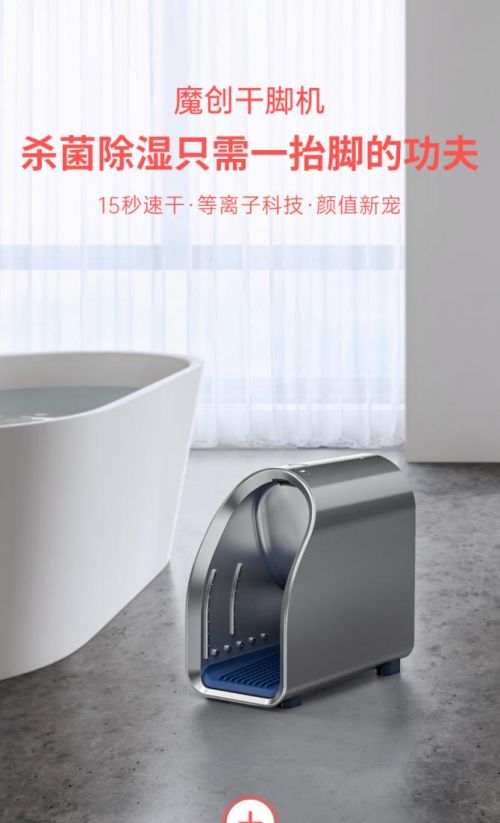 近日,魔创发布了年度旗舰新品——等离子干脚机。这款魔创重磅新品集烘干、除菌功能于一体,专为女性量身打造,主要解决女性出浴室后的干脚问题以及夏天汗脚问题,市场洞察独特,一经推市就受到消费市场热捧。