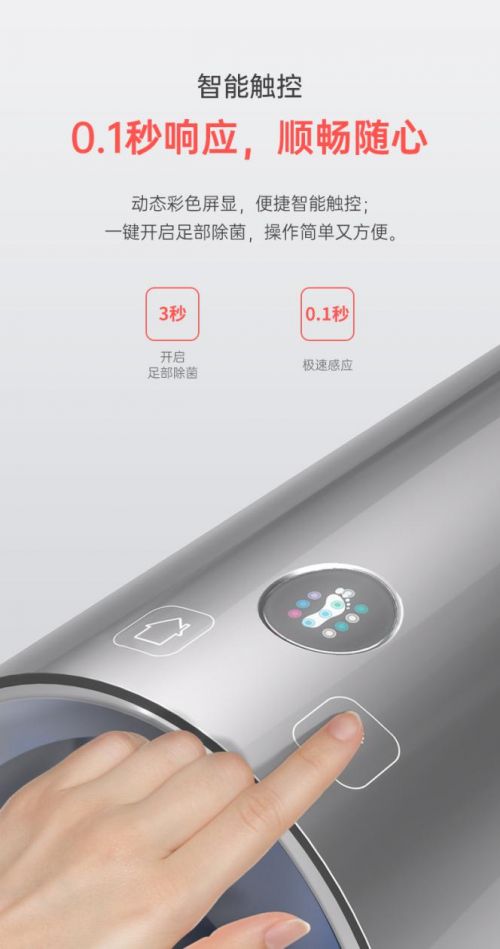 魔创干脚机采用智能感应系统,启动只需0.01秒,还配有动态彩色屏显,一键触控,状态实时知晓。