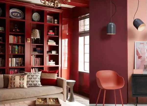 枫叶红一种温暖、复古又充满文艺气息红棕色调。在如今渐渐寒冷的秋季,给家里带来丝丝暖意,也是秋季里一抹亮丽的风景线。把它用在家居中,枫叶红可以作为主色调来,比如用做墙面,大面积的色彩亮丽又温馨,与柔软的软装一起搭配,更突显活力。
