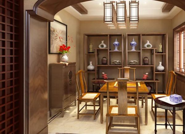 在新中式茶室中烹一壶茶,相约三五好友围桌而坐。不仅是喝茶、交流,而是一种心境的交融、和谐。