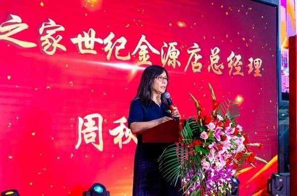 居然之家金源店总经理周秋红女士嘉宾致辞。她说,居然之家金源店位于北京最具消费力的核心区域,地理位置优越,聚客和流量优势显著,非常高兴能够和苏技创意装饰强强联手,为广大消费者提供更好的品牌选择和更专业的家装服务。