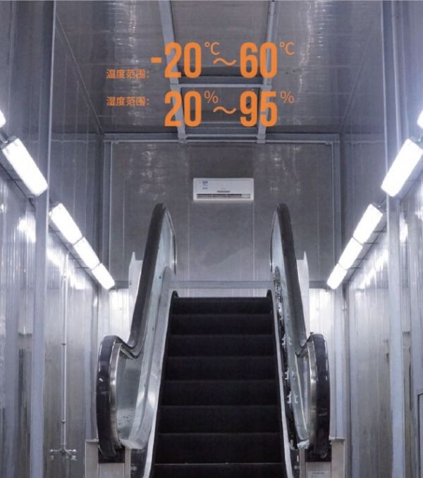 -整机严苛环境仓:具备模拟极度气候能力的两座大型环境仓,同时让直梯与扶梯在长时间、高压力、大强度的条件下,在 -20℃~60℃气温 / 20%~90% 湿度环境下比照汽车、航天工业的检测标准,进行整机的极端温度、湿度、疲劳测试。以极度严苛的标准,确保产品品质的稳定性与耐用度。