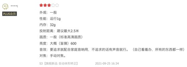 对于这款投影仪的平价,小编觉得用户们的平价也比较中肯。不过对于用户在实际体验后需要手动对焦形这个点,小编作为一个懒人,觉得这个十分不人性化。而且在商品的标签上还有错别字,这个就让小编强迫症犯了。