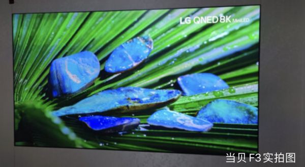 当贝F3在亮度上拥有2050ANSI的亮度,且在画质表现力上也不俗。它采用的是德州仪器TI0.47英寸的DMD芯片,相对康佳S3投影仪0.45英寸的DMD芯片来说,最终投射的画质分辨率有所提升,从1280*800dpi上升至1920*1080dpi,所投射的画面清晰度更高。(下图为用户自拍LG8K画质图)