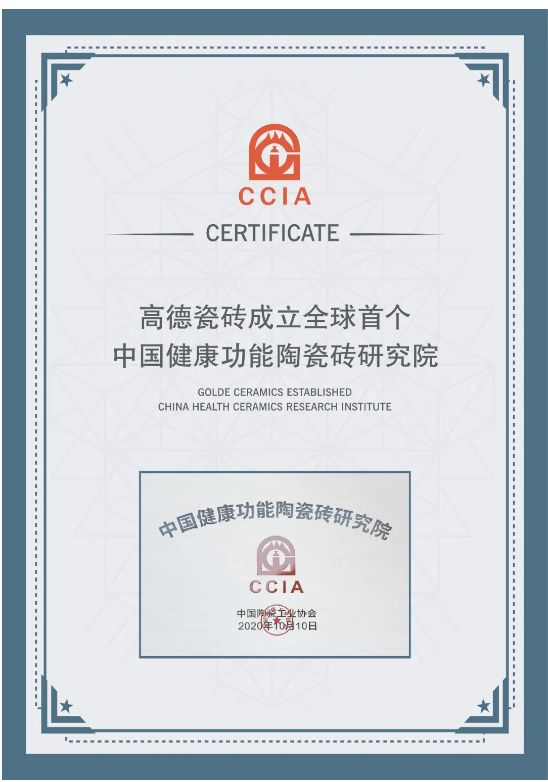 早前,全球首个“中国健康功能陶瓷砖研究院”正式落户高德瓷砖,成为行业首个专注于健康功能瓷砖的研究型组织,进一步加快健康功能瓷砖的技术积累向市场转化,推动健康功能瓷砖良性向上发展。