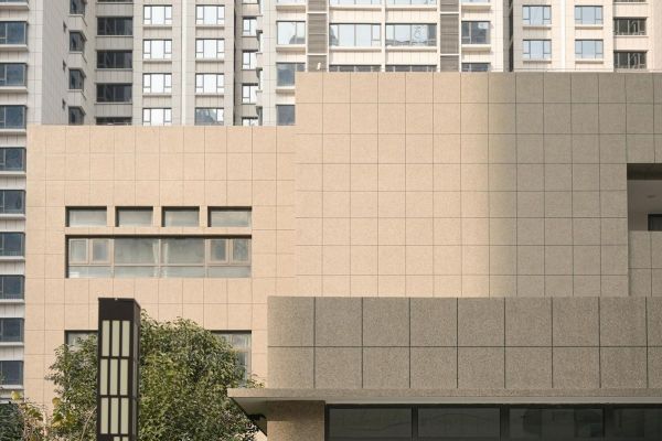 西安颐合府所应用的火烧面自洁花岗石涂料替代天然石材的资源开发,在还原花岗岩自然纹路和肌理触感的同时,选择了更环保的解决方案。