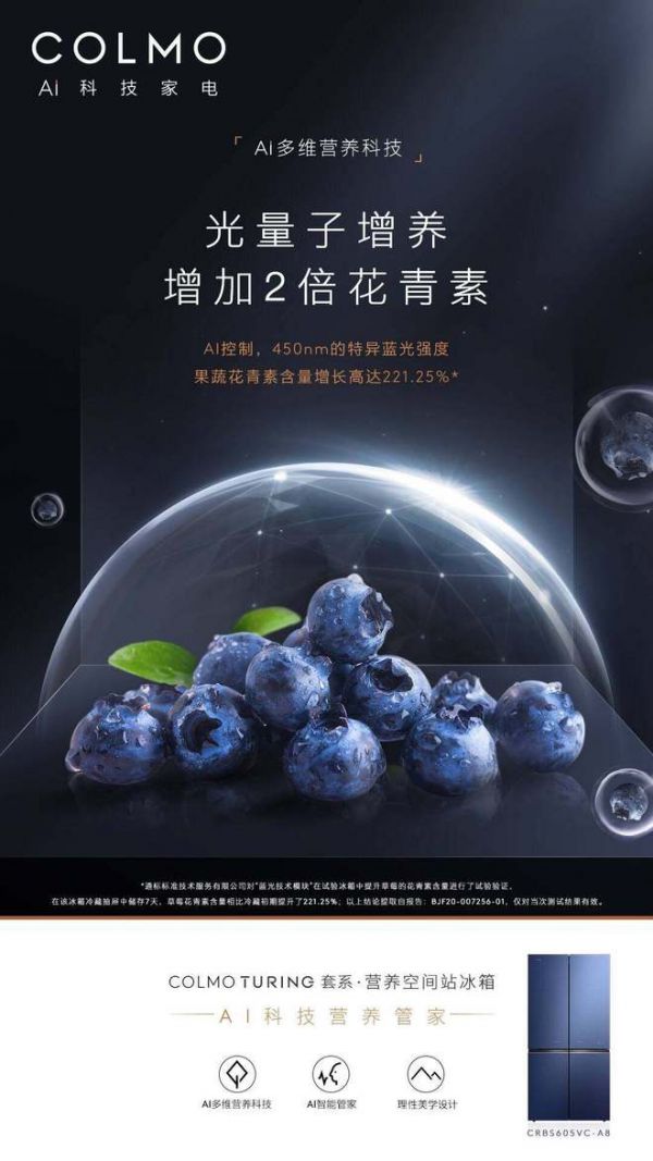 很多人都有这样的生活体验,刚买了蔬菜水果,放置一天后就已经变得不新鲜。这是因为果蔬里面的花青素随着时间的推移含量降低,营养流失严重。美的高端冰箱COLMO TURING套系·营养空间站冰箱以光量子增养科技,提升合成花青素关键CHS酶活性,并激发花青素基因表达效率。美的高端冰箱COLMO TURING套系使草莓花青素7天增长221.25%,给予爱美和爱健康用户更多天然抗氧化物的需求,有效锁留维生素、提升花青素+多酚。