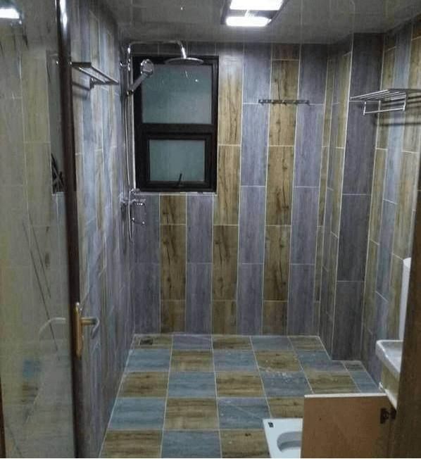 卫生间,四周墙壁贴满了瓷砖,颜色为冷色调,看起来就阴森森的,顶部的吸顶灯也不是暖色的,这地方是洗澡用的,这样装修还怎么洗,不得冻死啊。而且干湿分离也没装,洗一次澡整个卫生间都得打扫一遍,麻烦。