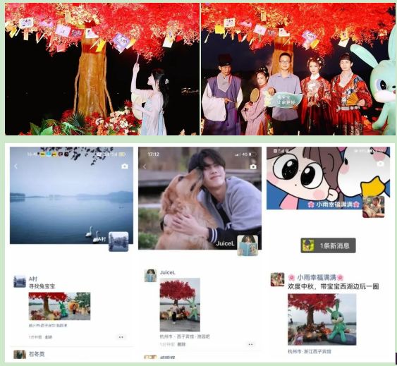 在公认绝佳赏月地杭州西湖边打造花前月下温馨仙境,化身“玉兔”的兔宝宝,精心准备丰富的互动来陪伴大家共度中秋,月桂树下可以挂上照片寄情相思,依山傍水的月夜美景可以与亲人一起打卡留念,现场环保材料制作的吧台上还准备了各式月饼糕点和伴手礼。