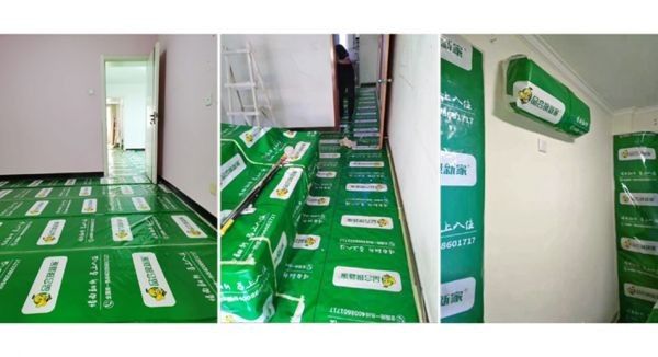 第二步:施工师傅进场,小心的把家具搬移到房间的中间区域。细致的将地面、家具、开关、踢脚线等不需要施工的位置遮蔽保护好,防止灰尘掉落在家具上。