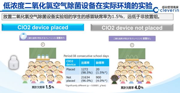 为验证加护灵除菌及预防流感效果,日本某小学曾专门做过对比实验。经3个月跟踪调查显示,摆放加护灵的教室学生缺席情况要比没有摆放加护灵的教室学生因流感缺席率低2.5%。