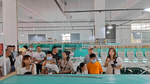 为了让消费者有更直观的感受,工作人员从红宝石墙布窗帘车间开始一步步带领大家了解刺绣墙布的工艺细节,让消费者更加了红宝石墙布窗帘的品质以及企业实力。