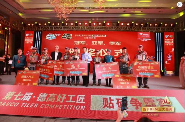 2014年开始,德高率先创办“好工匠贴砖争霸赛”,通过标准化培训,积极推动行业贴砖施工方式的变革,全面提升贴砖从业人员的技能水平。