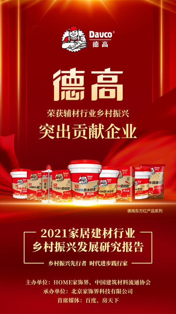 进入中国市场二十多年以来,德高一直致力于提供提升人居品质的建筑装修解决方案,德高防水、瓷砖胶、腻子等产品因创新、高效、环保优势,赢得行业、中国消费者、知名房地产开发商及建筑装修公司的高度认可。未来,德高将继续发挥行业标杆作用,积极践行社会绿色发展责任,用更高科技、更舒适的绿色建材产品,为乡村振兴的健康家居生活保驾护航。