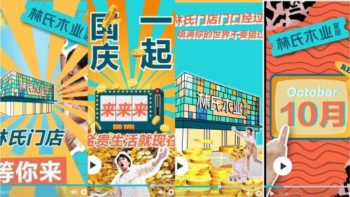 在这个金贵的黄金周,林氏木业还为消费者量身定制「林氏木业黄金之歌」,曲中融入当下消费者对黄金周的购物期待,品牌爆品优惠信息植入等,魔性的旋律加上创意MV的剪辑,歌曲在年轻用户活跃的各大社交平台以全国门店上线,线上线下全域声音洗脑,深化活动记忆点。