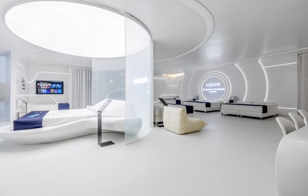 在这里,店员会告诉你:躺下来感受AI床垫。无需任何操控,躺上去,床垫就会自动识别、适应用户的体型和睡姿,自动调动床面的高度和软硬度,提供最贴合的支撑。