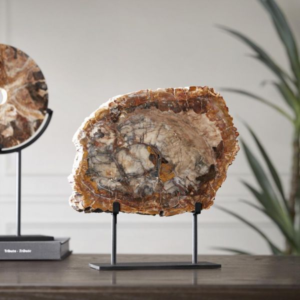 在选择与这个空间气质所搭配的饰品上,也许别具心裁,我们挑选了树化玉材质的摆件,作为联结自然的装饰元素。