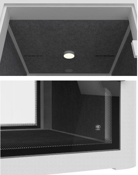 开放的办公环境中,来自外界与人为的噪音不仅影响着工作效率,也会危害员工身心健康。Halo静音舱,内饰材质迎合声学模拟设计,利用聚酯纤维(PET)吸声来隔绝噪音。并利用高噪谐震的列车车厢玻璃,增加隔声和安全性能。