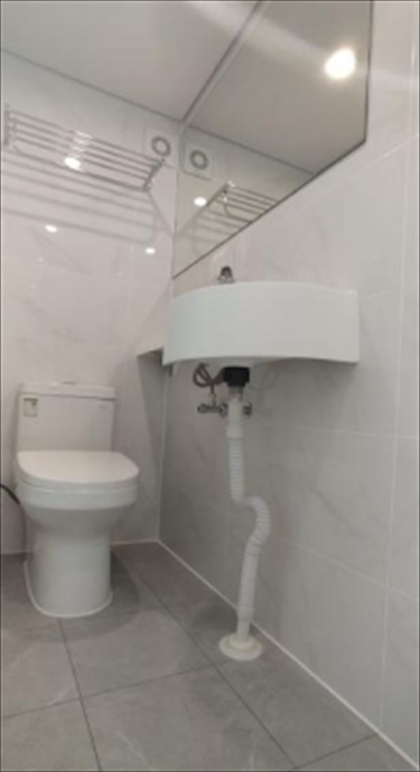 该项目公寓的卫生间装修采用的是瓷砖体系整体卫浴,用一体化防水底盘加上聚氨酯复合瓷砖构成框架,配上各种功能的洁具形成独立卫生单元,在有限的空间内可达到优良的整体效果,小巧精致,功能俱全,适用度高,品质感强!
