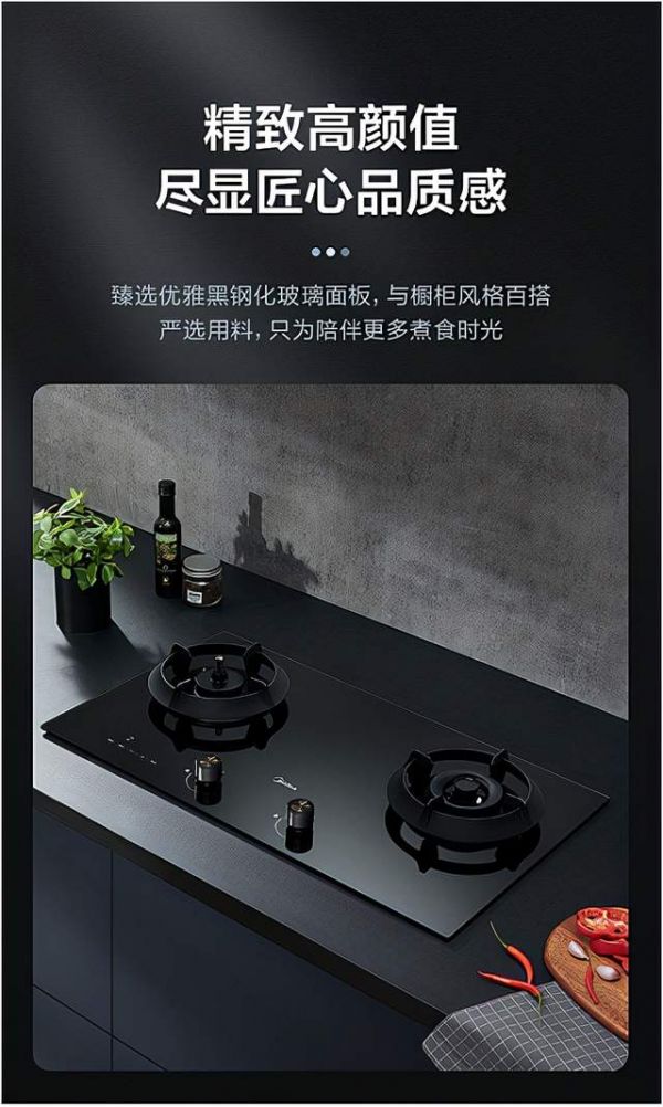 此外,美的控温三防灶Q715K—X甄选优雅黑钢化玻璃面板,与橱柜风格百搭,严选用料,只为陪伴更多煮食时光。全铜火盖设计,耐高温、抗腐蚀,无惧灶台复杂环境;易洁盛液盘,表面纳米级平滑,每天轻松一抹,长久亮洁如新;全钢化面板,耐热耐冲击,温度骤变依然保持稳定;5.0KW黄金火力,大火力稳燃,驾驭快炒爆炒,为家庭创“灶”健康美味,让您轻松爱上智慧厨房。