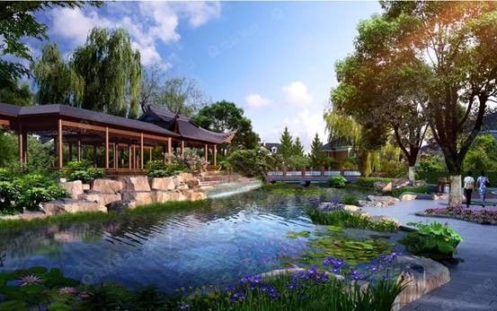 580米内溪水环绕园区,围成独立小岛,430米林荫小路溪边延伸,阡陌交错。外有山峦叠嶂,河水澎湃,内有溪水绕岛,林荫作伴。128株参天古树与千米草坪,将108栋欧式别墅融于自然,彰显中西合壁的风情。