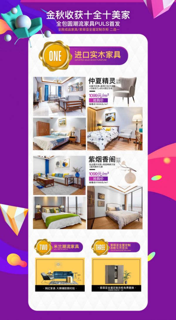 第二重,签约“仲夏精灵”、“紫烟香阁”等特定样板间,可享北美白蜡木、金丝檀木精品实木家具免费赠送。同时,消费者除可在全包圆金秋活动中获得米兰大牌潮流家具的优先购置机会外,还能在索菲亚全屋定制衣柜与全屋家具中进行“二选一”免费置换。此两项高品质潮流家具唾手可得的机会,实为难得。