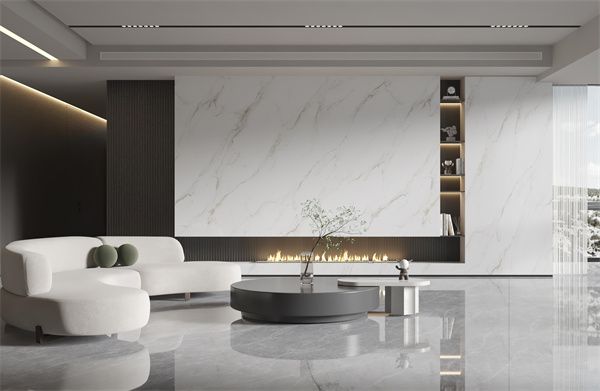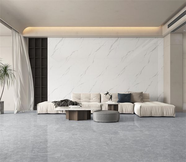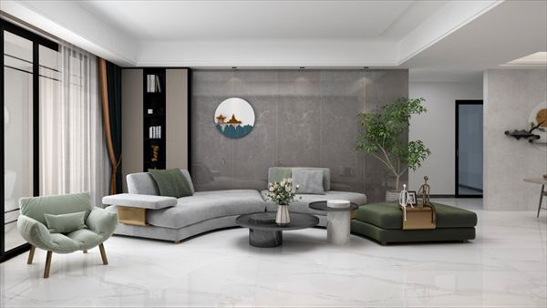 以简洁的设计手法,打造简约大气的家居空间,墙面背景墙选用清系列新品轻纱水云白,雪白的底色中,飘舞着自由洒脱的青灰色纹理,细腻精致;地面选用清系列新品杜兰特灰,白色细纹飘逸灵动,洋溢着时尚优雅的精致质感。