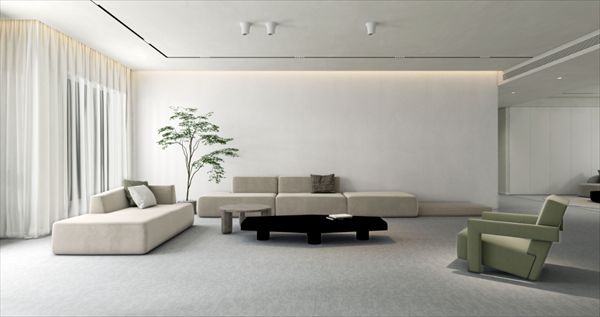 侘寂风格,在平淡的生活空间中窥见质朴极简之美。墙面选用华系列新品绮裘白,地面选用华系列新品云纱深灰,打造低饱和度的纯色系空间,再以温暖清新的自然元素作为点缀,给生活带来一些趣味,营造雅致舒适的家居氛围。