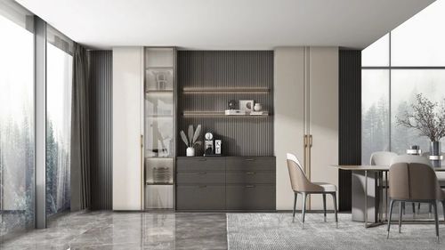 欧派衣柜“卡娜”系列在设计中将现代、雅奢等特征融入到整体空间的打造上,形成了风格统一的全屋定制方案。在玄关空间上,设计了集储物、换鞋凳、挂衣区、展示台于一体的玄关柜,用费列罗金背板点缀,为整体空间增添了古典韵味。客厅则摒弃了繁复的雕饰,采用“回型”电视柜,虚实结合,提升整体颜值。餐厅柜选用米白哑光皮纹和咖色哑光皮纹,搭配德国雷诺丽特进口膜,勾勒出法式浪漫格调。