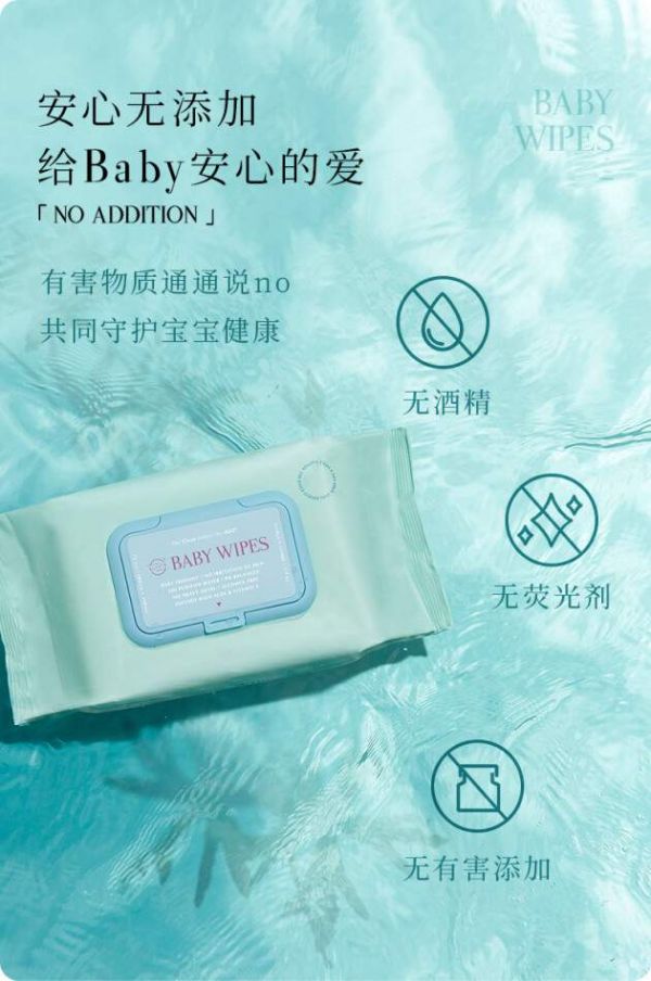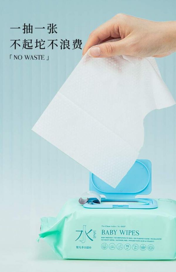 取自天然,亲近自然。这款婴儿手口湿巾,以柔和纯净的蓝绿色作为主色调,搭配特别设计的汉字“水”,作为点睛之笔呈现于外包装之上,一阵清凉、舒适的视觉感受扑面而来。光从湿巾的外观设计上,便能感知的ch22的研发初心,希望在妈妈和宝宝充满欢笑和爱意的那些寻常日子里,能够有一款安全、天然的安心湿巾,24小时随时给予细心呵护。